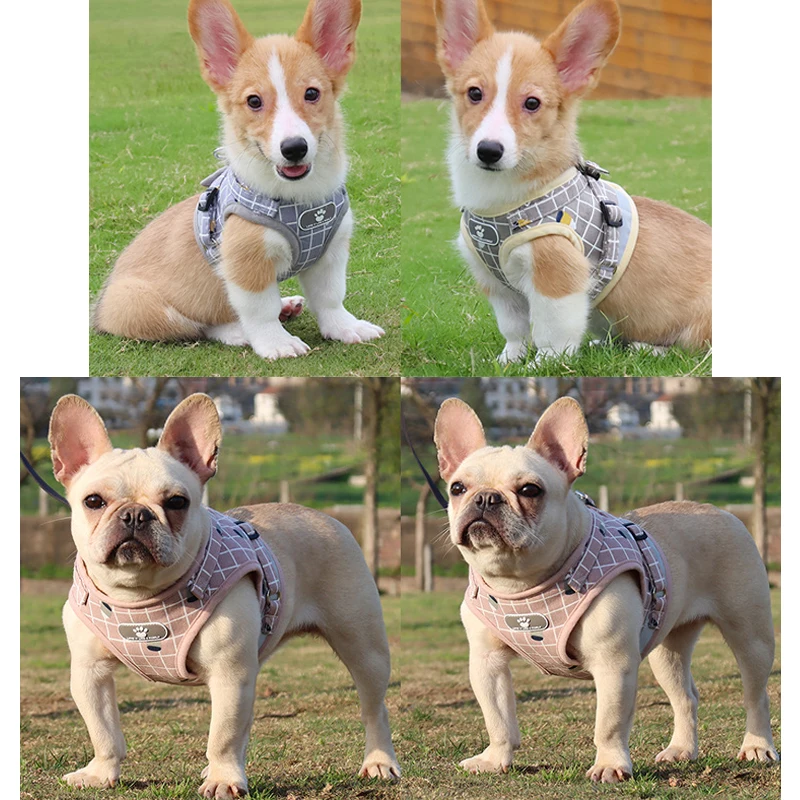 2. Made with breathable nylon and mesh materials, this Reflective Harness & Leash Set is perfect for spring and summer walks with your pet. Available in khaki, pink, and gray, this vest is adjustable and reflective for added safety.